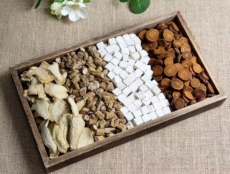 茯苓 5 克、干姜 5 克、党参 10 克、炙甘草 5 克,把这些药材放在一起煮水,当作日常茶饮。可以温阳健脾祛湿、增加活力
